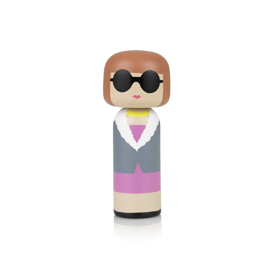 La muñeca Kokeshi de Anna es una impresionante y sofisticada muñeca de madera que rinde homenaje a la icónica editora en jefe de moda. Diseño moderno con su característico corte de pelo bob, gafas de sol negras y una elegante chaqueta de traje, todo inspirado en su impecable sentido de la moda.