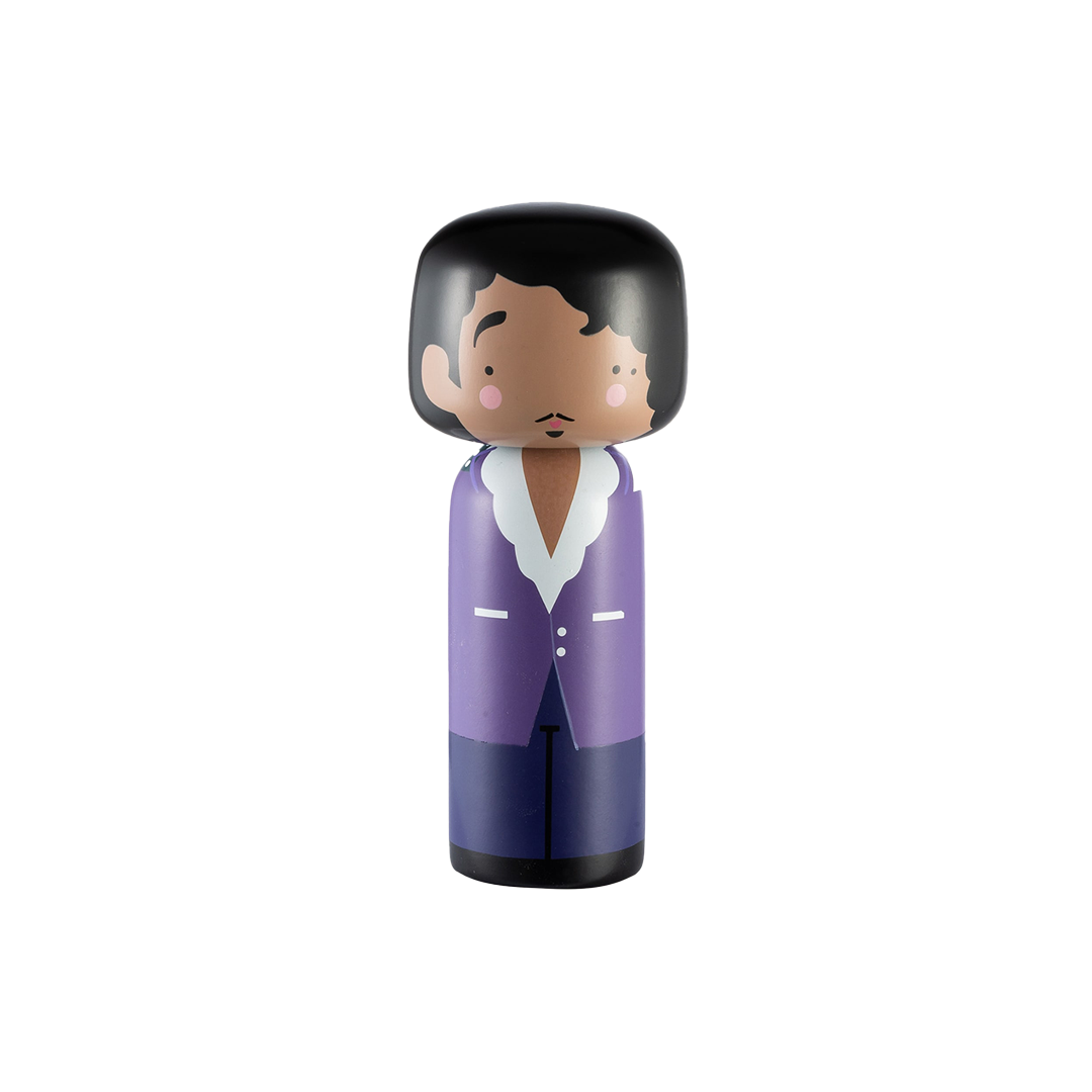El Príncipe Kokeshi rinde homenaje al legendario músico, cantante, compositor de canciones e ícono de la cultura pop. El Príncipe Kokeshi presenta un diseño colorido y elegante con su distintiva camisa de cuello alto y su traje morado, todos inspirados en su inconfundible sentido de la moda.
